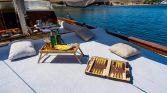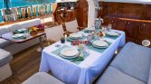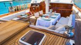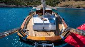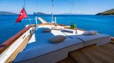 Perfect for a group of six, the gulet features three well-appointed cabins designed for ultimate comfort after a day in the sun. The real magic happens on deck: stretch out on the plush sunbathing pads as the coastline drifts by, or enjoy al-fresco dining under the shade of the aft deck. Whether you want to swim in crystal-clear waters, explore ancient ruins, or simply do nothing at all, A.Eser provides the perfect floating home for your dream charter.