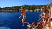 Accommodating up to 22 guests in 11 en-suite cabins, Aegean Clipper provides the perfect blend of privacy and togetherness. Spend your days hoisting the sails for a true blue voyage, then retreat to the flybridge as the sun dips below the horizon, cocktail in hand. With a dedicated crew of 5 attending to your every need, this isn’t just a charter—it’s your private front-row seat to the beauty of the Turkish Riviera.