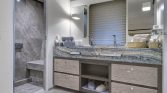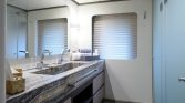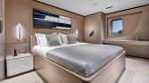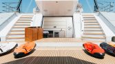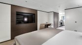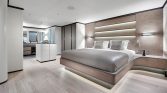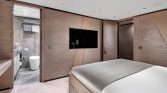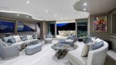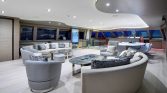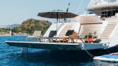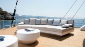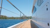 Yet, the true magic of All About You 2 is found on her expansive decks. The vast aft deck is an ideal setting for enjoying long, leisurely lunches of exquisite Mediterranean cuisine prepared by your private chef. Move forward to the generous bow seating area, complete with sun pads, and you’ll find the perfect spot to soak up the sun or lie under a blanket of stars. For those seeking a moment of shade and relaxation, the flybridge offers a tranquil lounge area with panoramic views of the ever-changing seascape.