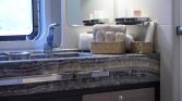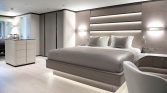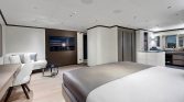 Step on board and you are immediately welcomed by an atmosphere of contemporary sophistication. Her spacious interiors are bathed in natural light, showcasing a sleek, modern aesthetic with rich woodwork and plush, comfortable furnishings. The accommodation is first-class, with beautifully appointed, air-conditioned cabins that offer a serene sanctuary, each featuring en-suite facilities and thoughtful touches to ensure your utmost comfort.