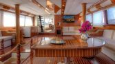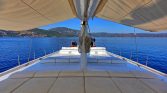 Step inside, and you’ll discover interiors that honor Turkey’s rich maritime heritage while embracing contemporary elegance. The saloon, bathed in natural light from panoramic windows, invites lingering conversations on plush seating. Rich wooden details throughout—mahogany and teak lovingly maintained—create warmth that no modern material can replicate. An LCD TV, DVD player, and premium sound system offer entertainment when you seek it, but most guests find the views through those windows entertainment enough .