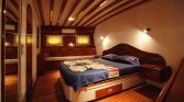Angelo 2 welcomes up to fourteen guests into seven thoughtfully designed cabins, each a peaceful retreat from the sun-soaked adventures of the day . The configuration includes one master cabin and six double cabins, every one featuring queen-size comfort, en-suite bathrooms with modern rainfall showers, and individual climate control that ensures perfect temperatures regardless of the season .