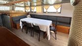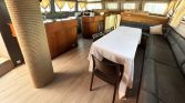 The interior salon offers a comfortable lounge area where guests can relax after a day at sea. Onboard entertainment and convenience include Wi-Fi, TV, and a music system with Bluetooth connectivity, allowing guests to enjoy their favorite music or stay connected during the cruise. The yacht also features a well-equipped galley with ice maker, coffee machine, dishwasher, and oven, ensuring delicious meals can be prepared throughout the trip.