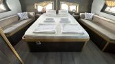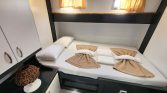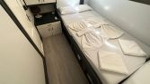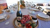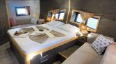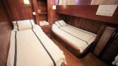 The yacht can accommodate up to 12 guests in 6 comfortable cabins, including one master cabin, four double cabins, and one twin cabin. Each cabin is equipped with its own private en-suite bathroom with shower, providing privacy and convenience for every guest on board. Air conditioning is available throughout the yacht, with the possibility of full-night use, ensuring a pleasant environment even during the warm Mediterranean summer.