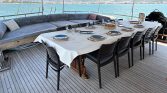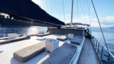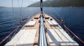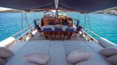 Outdoor spaces on Gulet Aria are designed for enjoying the beauty of the sea. The spacious decks provide sun mattresses for sunbathing, shaded areas for relaxation, and comfortable seating for outdoor dining. A special highlight of the yacht is the sunset seating area at the bow, which offers a wonderful place to relax with a drink while watching the sun set over the Mediterranean horizon.