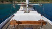 The Aft Deck: Heart of the Home – Shaded by traditional awnings, this generous space hosts the dining table where your group gathers for meals that become legends. Breakfast as the harbor stirs to life: just-baked bread still warm, local honey golden and fragrant, olives tasting of mountain villages. Lunch at anchor in a secret bay: mezes bursting with color, grilled fish caught that morning, laughter echoing across water. Dinner under stars: candlelight and conversation, wine flowing as freely as stories, the gentle lap of waves providing nature’s soundtrack .
