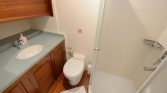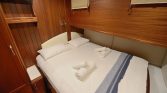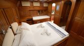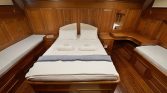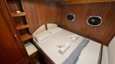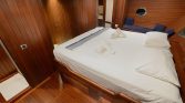 The Two Master Cabins – Here, queen-size comfort meets elegant restraint. Soft white and beige tones create an atmosphere of calm, while quality linens invite deep, restorative sleep. These are sanctuaries designed for lingering—morning coffee in bed as sunlight streams through portholes, afternoon naps with the gentle rocking of the boat as lullaby, evening rituals before gathering on deck for dinner .
