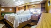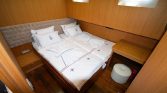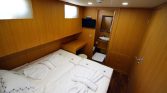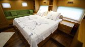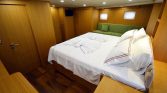 The Two Master Cabins claim the most privileged positions aboard. Here, queen-size comfort meets walls of light, windows positioned to catch morning sun and frame ever-changing sea views. Waking here is to understand why the builders chose this path because watching dawn paint the Aegean from a bed bathed in golden light is an experience no dark interior can match .