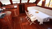 Step aboard, and you’ll find interiors paneled in high-quality wood that matches perfectly with cabinetry and furnishings—not the dark, heavy mahogany of old, but something lighter, brighter, more welcoming . The saloon curves around you with a sofa designed for lingering, while panoramic windows flood the space with light while somehow maintaining that cozy, intimate feeling you crave on a private charter .