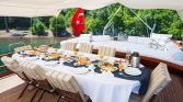 Your Chef performs daily magic in the galley, serving Turkish cuisine at its best . You may choose between full board (three meals plus teatime) or other options, with special diets like vegetarianism easily accommodated . “If there are vegetarians among you, no problem at all, the Turkish cuisine is the best solution for that” .