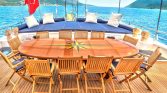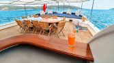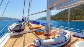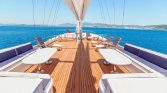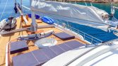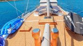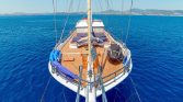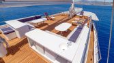 But the real magic is above deck. A flybridge stretches across the top, wrapped in plush seating, offering views that make you forget you’re on a Gulet Bella Mare and feel like you’re flying just above the water . This is where you’ll watch sunsets, where dinners feel like events, where the horizon becomes your constant companion.