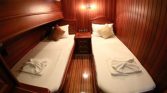 With 6 tons of fresh water and 2 tons of fuel, she’s well-equipped for extended voyages through the pristine bays of Bodrum and beyond . Her rounded stern and classic gulet silhouette turn heads wherever she sails, a testament to the quality of her Star Park Shipyard construction .