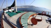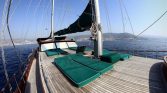The spacious sun deck area is equipped with comfortable sun mattresses and cushions for every guest . Separate sun-bathing and shaded seating areas provide the perfect atmosphere for relaxing and enjoying the unspoiled Turkish coast . Whether you’re basking in the Mediterranean sun or reading in the shade, there’s a perfect spot waiting for you .