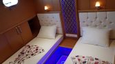 The gulet accommodates up to 8 guests in 4 well-appointed cabins, including 2 master cabins and 2 twin cabins. Each cabin features a private en-suite bathroom with shower facilities, ensuring privacy and convenience for all guests on board. One of the yacht’s most distinctive features is the Jacuzzi located in the master cabin, adding an extra level of comfort and exclusivity to the charter experience. Air conditioning is available throughout the yacht and can be used for 8 to 12 hours per day, ensuring a pleasant indoor climate during warm Mediterranean evenings.