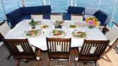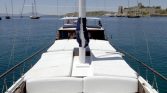 The outdoor areas of Gulet Blue Romance are designed for relaxation and socializing. The aft deck features a shaded dining area with comfortable seating where guests can enjoy freshly prepared meals while taking in the stunning sea views. The foredeck provides sun mattresses and cushions, creating the perfect place to sunbathe, read a book, or simply enjoy the gentle sea breeze. The yacht’s teak decks and outdoor lounge areas add to the traditional charm that makes gulet cruising so special.
