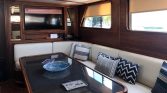 The interior salon provides a comfortable lounge area with elegant seating where guests can gather to relax, watch movies, or enjoy drinks together. The yacht’s fully equipped galley includes modern appliances such as a wine cooler, ice maker, coffee machine, dishwasher, refrigerator, freezer, and washing machine, ensuring both convenience and high-quality service throughout the charter.
