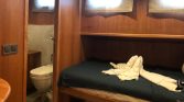 The yacht comfortably accommodates up to 12 guests in 6 well-designed cabins. The cabin layout includes 2 master cabins and 4 double cabins, each equipped with a private en-suite bathroom with shower facilities. All cabins are air-conditioned and feature smart televisions with IPTV and Netflix access, allowing guests to relax and enjoy entertainment after a day at sea. Air conditioning can be used for 8 to 10 hours daily, with the option of running throughout the night for additional comfort.