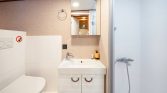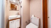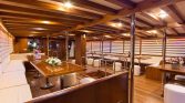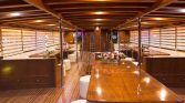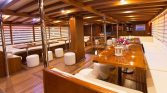 The spacious salon provides a welcoming indoor lounge area where guests can relax, socialize, or enjoy entertainment. The yacht is equipped with LCD televisions, DVD player, Bluetooth speakers, and a sound system, creating a lively atmosphere for gatherings. Wi-Fi is also available, allowing guests to stay connected during their journey.