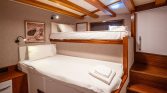 The yacht is powered by twin Cummins engines, providing reliable performance for cruising between scenic bays and coastal towns. Gulet Boreas is also equipped with modern onboard facilities including a watermaker, fully equipped galley, washing machine, dryer, BBQ area, American-style bar, and deck showers, ensuring convenience and comfort during extended cruises.