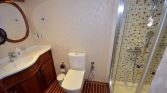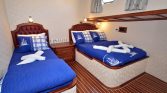 With a wide 8-meter beam, Gulet C. Taner 2 provides exceptional stability and comfort while cruising. The yacht can accommodate up to 16 guests in 8 well-designed cabins, making it an excellent option for extended families or groups of friends traveling together. The cabin configuration includes one master cabin, four double cabins, two triple cabins, and one twin cabin, allowing flexible arrangements depending on the needs of the group. Each cabin features a private en-suite bathroom with shower facilities, comfortable beds, and air conditioning to ensure a relaxing stay on board.