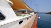 A professional crew of four, including a captain, chef, sailor, and steward, ensures that every aspect of the journey runs smoothly. The captain navigates through some of the most beautiful cruising areas of Turkey, particularly around Bozburun, Marmaris, Göcek, and nearby Aegean bays, while the chef prepares fresh and flavorful Mediterranean dishes using local ingredients. The crew’s attentive service helps create a relaxed and welcoming environment for guests.