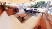 Outdoor living spaces are ideal for enjoying the sea and sunshine. The yacht features comfortable sun mattresses for sunbathing, shaded areas for relaxing, and a deck shower for rinsing off after swimming. The spacious deck also provides the perfect setting for alfresco dining while enjoying beautiful coastal views.