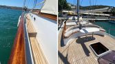 Outdoor areas are designed for relaxation and enjoying the scenery. Guests can unwind on the sun mattresses on the foredeck, enjoy drinks while watching the sunset, or rinse off in the deck shower after swimming in secluded bays. The yacht’s compact yet comfortable deck layout makes it easy to enjoy the calm atmosphere of the Mediterranean.