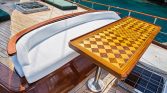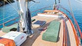 The outdoor areas provide a perfect environment for enjoying the sea and sunshine. The teak decks, comfortable sun mattresses, and sun awning for shade create a pleasant space for relaxing, sunbathing, or enjoying scenic coastal views. A deck shower allows guests to refresh after swimming in crystal-clear bays.