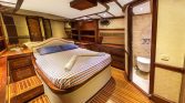 The yacht accommodates up to 4 guests in two comfortable double cabins. Each cabin features a private en-suite bathroom with shower and toilet, providing convenience and privacy throughout the journey. The cabins are air-conditioned, ensuring a pleasant atmosphere during warm Mediterranean nights.
