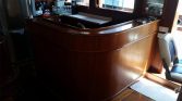 Inside the yacht, the cozy salon offers entertainment and comfort with LCD TV, DVD player, and a music system with Bluetooth connectivity. Guests can also enjoy limited Wi-Fi access, as well as amenities such as an ice maker, coffee machine, dishwasher, refrigerator, freezer, oven, wine cooler, and washing machine. The yacht is also equipped with full navigation equipment to ensure safe and smooth cruising.