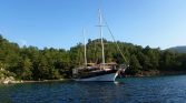 Gulet Dogukan A is a classic traditional Turkish gulet built by the renowned Bozburun Shipyard, an area famous for its handcrafted wooden yachts and long-standing maritime tradition. This 25-meter gulet offers a comfortable and authentic Blue Cruise experience, combining classic design with practical amenities, making it a great choice for families and groups looking for a relaxed sailing holiday in Turkey and the nearby Greek Islands.