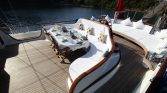 The yacht is operated by a professional crew of five, typically consisting of a captain, cook, two deckhands, and a hostess or housekeeper. The experienced crew is dedicated to providing attentive service, preparing delicious Mediterranean cuisine, and ensuring that guests enjoy a relaxing and memorable charter experience. Their knowledge of the region also allows them to guide guests to some of the most beautiful bays and hidden coves along the Turkish coast.
