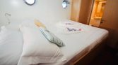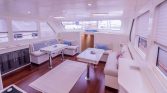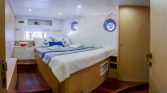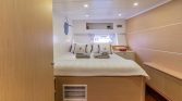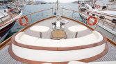 The yacht’s outdoor areas are designed for relaxation and enjoyment of the sea. The aft deck features a comfortable dining area where guests can enjoy meals while taking in panoramic views of the coastline. On the foredeck, guests will find sun mattresses and shaded areas, ideal for sunbathing, reading, or simply relaxing during the cruise. A deck shower is also available for refreshing after swimming in the crystal-clear waters.