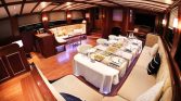 The interior design blends modern comfort with classic gulet elegance, creating a welcoming and luxurious atmosphere onboard.