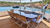 The flybridge is one of the yacht’s standout features, offering a social and relaxing hub with stunning sea views.