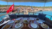 Guests can enjoy sunbathing on deck, dining outdoors, and exploring beautiful bays with snorkeling gear, canoe, or paddleboard while cruising the stunning Turkish coastline.