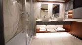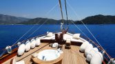 Hosting 12 guests across 6 cabins—including 5 equally luxurious master suites—Mare Nostrum offers unparalleled privacy and comfort. Each cabin features spa-style bathrooms with jacuzzi baths, ensuring a pampering retreat after a day exploring turquoise bays and hidden coves. The expansive deck boasts an on-deck jacuzzi, sunbathing areas, and teak finishes that exude timeless elegance.