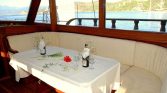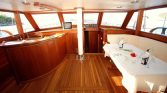 The aft deck has a table where meals stretch into hours. Sun mattresses invite naps. The teak underfoot has been polished by decades of bare feet, and it shows in the best way possible.