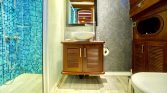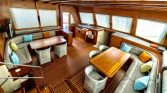 The interior design combines modern luxury with traditional wooden craftsmanship, creating a welcoming atmosphere onboard.