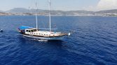 From the moment you step aboard, the yacht’s elegant ambiance becomes immediately apparent. Warm teak decks, contemporary finishes, and carefully curated living spaces create a setting that is both inviting and refined. Every detail has been designed to deliver a premium onboard experience while maintaining the authentic charm of a classic gulet.
