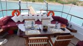 Gulet Naz Can offers a relaxed and intimate onboard atmosphere, ideal for guests who want to enjoy the sea in a more private setting. Her front deck features a spacious sunbathing area with enough cushions for all guests, while the aft deck includes a shaded dining space for comfortable outdoor meals.