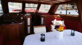 The interior also includes a warm and inviting saloon with a dining table and relaxation area. Her boutique concept makes the yacht especially suitable for guests who want a more personal and peaceful charter holiday instead of a large group atmosphere.