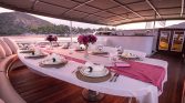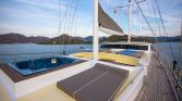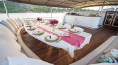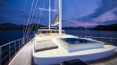 One of the standout features of the yacht is the jacuzzi on the front deck, where guests can relax while enjoying sea views or watching the sunset. Her elegant wooden design also preserves the charm of a traditional Bozburun-style gulet while delivering modern luxury standards.