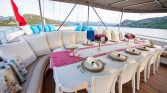 Gulet Nevra Queen offers a truly spacious and luxurious onboard atmosphere, with large deck areas and comfortable living spaces for socializing, relaxing, and dining. Her size and design make her especially suitable for guests who want a premium charter experience with room for everyone to enjoy the holiday together.