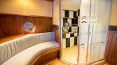 The yacht is also equipped with modern comfort features such as a watermaker, ice maker, and espresso coffee machine. Guests can enjoy meals and drinks in spacious dining areas while relaxing in a refined and well-organized atmosphere.