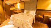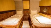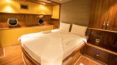 All cabins are equipped with private bathrooms, shower cabins, home-style toilets, TV, and 24-hour air conditioning. The master cabins include king-size beds, while the saloon offers a stylish bar, wide seating area, dining table, widescreen TV, and advanced music system for guest comfort.